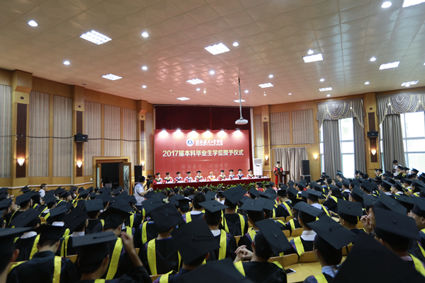 27日上午,本科生学位授予仪式在北校区2108教室举行。校领导易忠、罗延忠、郝德温、罗国湘、义祥辉、詹皖生、杨杰、李智为毕业本科生颁发学位证书,并行拨穗礼。罗延忠代表学位委员会宣读《pp电子官方网站入口关于授予2017届毕业生学士学位的决定》。