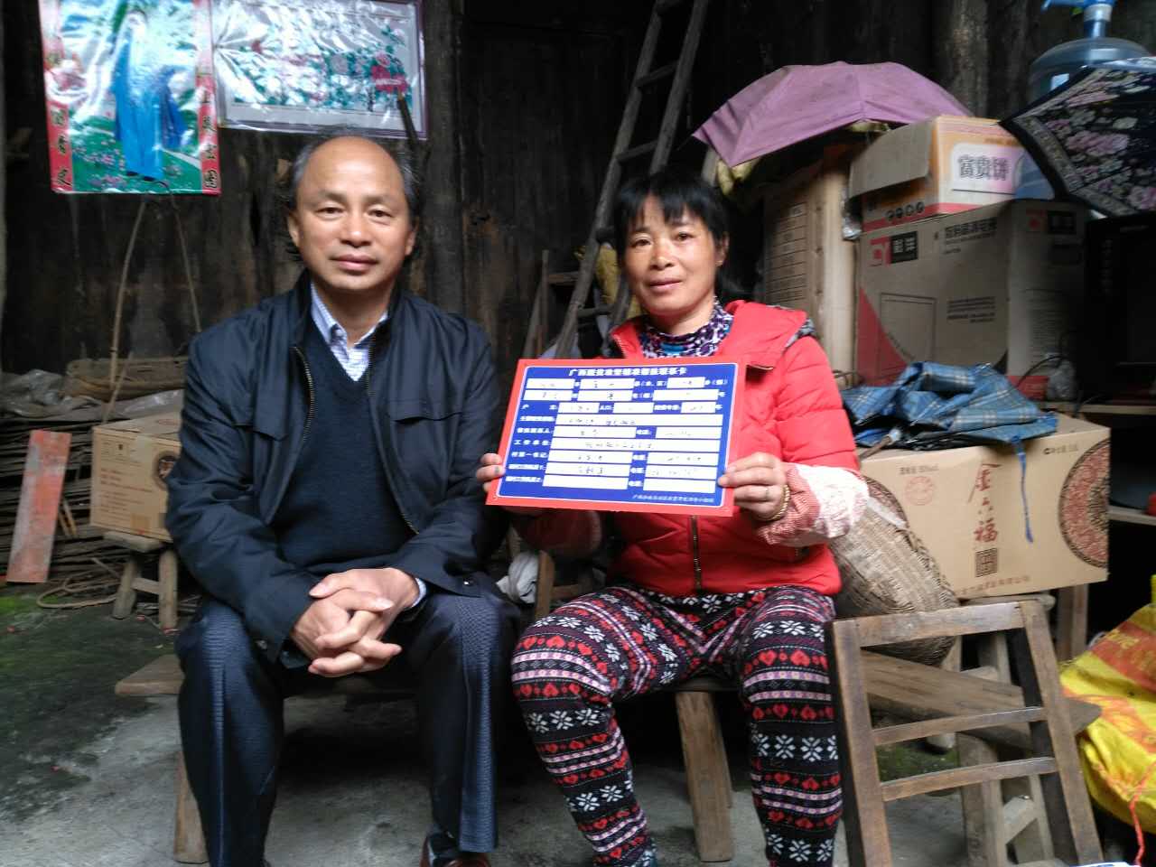 党委书记李幼平(右一)在新圩镇共耕村贫困户家中走访慰问