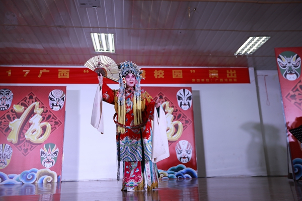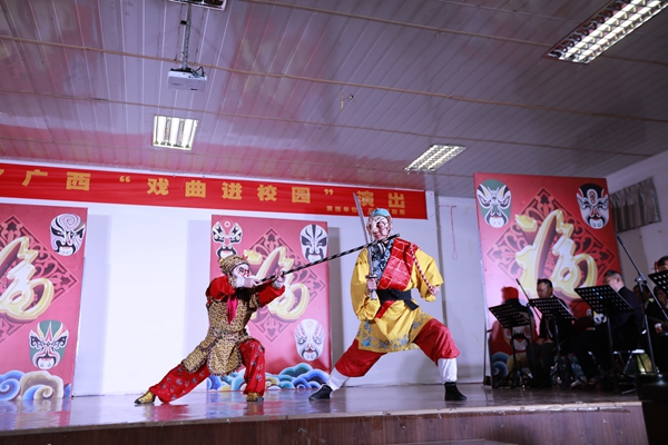 为弘扬我国优秀传统文化,提高pp电子师生的“艺术魅力”, 3月15日上午,广西戏剧院京剧团在pp电子开展京剧进校园演出活动。