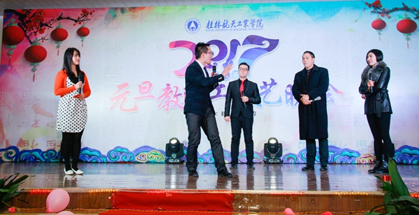 2016年12月29日,由工会、校团委联合举办的2017教职工元旦晚会在招聘大厅成功举办,校长易忠、党委副书记黄文韬、副校长郝德温、罗国湘、义祥辉、詹皖生出席了晚会,学校师生700人多观看了晚会。