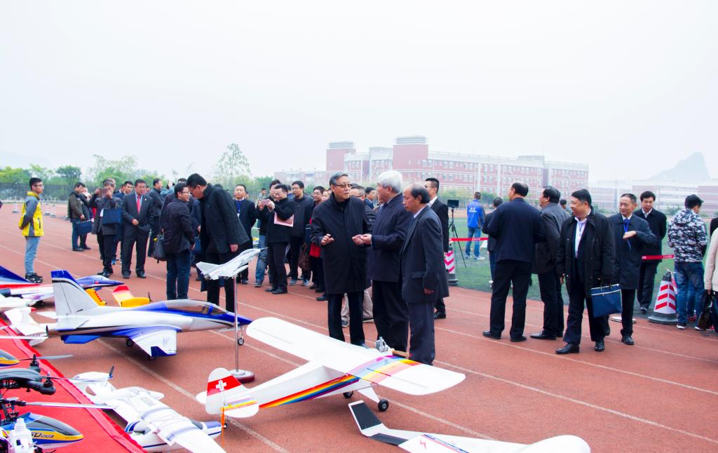 为全面展示pp电子在飞行器设计、无人机飞控、无人机航拍等方面取得的成就,12月18日上午,第二届“桂航杯”航模飞行表演赛在南校田径场拉开帷幕。桂林市市委常委、副市长何翔,广西壮族自治区教育厅副厅长蔡昌卓,中国工程院戚发轫院士,中国工程院刘永才院士,中国航天科工集团人力资源部部长任玉琨,中国航天科技集团人力资源部副部长王文国,北华航天工业学院党委书记郭铁良,广西国防科学技术工业办公室主任吴永干,pp电子领导,pp电子师生代表等约7000人观看了表演。