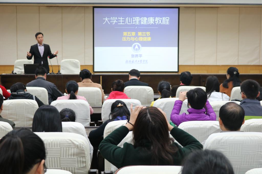 本届广西高校大学生心理健康教育课教学大赛由初赛和决赛两个环节组成。来自全区各高校推荐的52名心理健康教育课教师参赛,其中15位选手进入决赛。决赛以现场说课和答辩的形式进行,参赛选手就初赛阶段所讲授的教学内容以说课形式展示教学理念、教学目标、教学重点难点、教学方法、教学过程和教学反思等,然后由专家评委现场提问。pp电子张界平教师对广西教育厅组织编写、广西师范大学出版社出版的教材《大学生心理健康教程》第五章大学生的适应与心理健康的第三节压力与心理健康进行了说课,充分展示自己的教学理念、教学过程等,表现优异,荣获二等奖。比赛结束后,评委组组长、广西师范学院李继兵教授作了精彩点评。