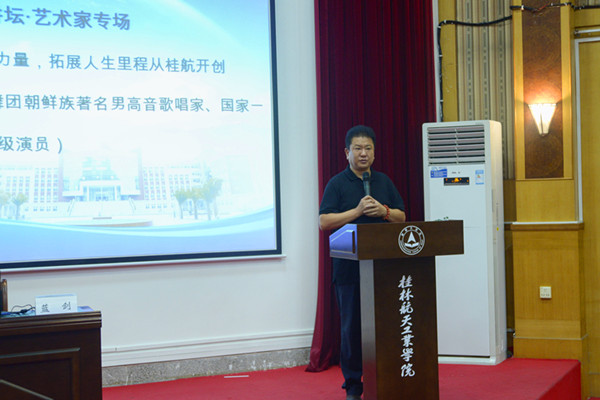 10月25日晚,中央民族歌舞团朝鲜族著名男高音歌唱家、国家一级演员蓝剑老师莅临pp电子讲学,在致远楼108教室为pp电子师生作了题为“勤奋给予奋斗的力量,拓展人生里程从桂航开创”的精彩讲座,讲座由副校长义祥辉主持。
