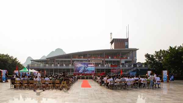 杨杰、沈克共同为“航V二号”新车揭幕,杨杰为赛车贴上号牌。今年的参赛队员接过队旗,车队成员集体宣誓桂航精神和车队精神。