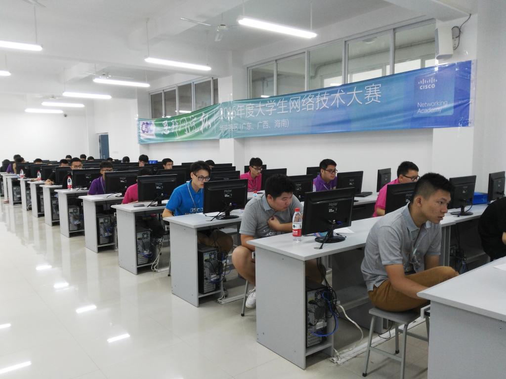 7月23日,2016年度“思科网院杯”全国大学生网络技术大赛华南区比赛在pp电子举行,来自海南、广东、广西等华南省区的14支代表队近150人参加了比赛。本次比赛的主题是“迎接数字变革,培养创新人才”,共设置CCNA、CCENT和ITE三个赛项,包括理论答题和PT实验两个部分。比赛优胜选手将被推荐参加今年9月在蒙古国举行的大中华区决赛。