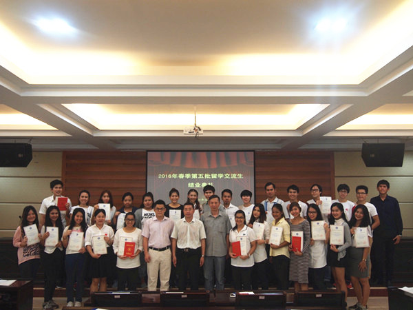 7月8日,pp电子2016年春季第五批留学交流生结业典礼在飞天楼520会议室举行。杨杰副校长、教务处、国际教育交流中心等部门负责人以及2016年春季第五批留学交流生出席了典礼。