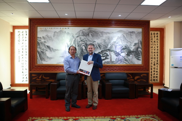 易忠与Freddy Dumortier在数学专业领域进行了探讨,并代表学校赠送了航天文化宣传品。