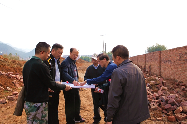 校领导详细询问了新校区地界围墙和地面清表工作的进展情况,并就目前新校区建设工作中存在的困难和问题提出了指导性意见和建议。