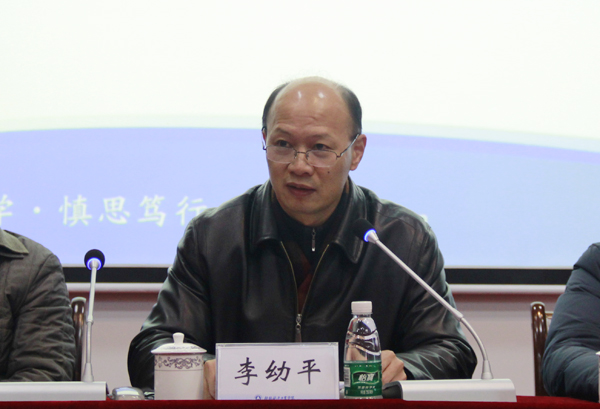 会上,李幼平作了重要讲话。首先,他从学士学位授权评估、内设机构调整、实质性回归航天、境外银行贷款等方面总结了2015年学校改革发展所取得的重大成就,并指明了下一步寻求重点突破的着力点。接着,他重点阐述了今年学校改革发展的思路:以推动向应用型大学转型发展为主题,从尽快融入广西经济社会发展、瞄准新产业新业态和新技术、建立行业企业合作发展平台、建立紧密对接产业链的专业体系、创新应用型技术技能型人才培养模式、大力发展本科层次职业教育等六个方面进行了分析并做出部署。最后,李幼平从加强干部队伍建设、加强基础党组织建设和党风廉政建设及反腐败工作三个方面说明了2016年党建工作的重要着力点,并对建立健全师德师风考核体系、强化学校师风师德建设提出了总体要求。