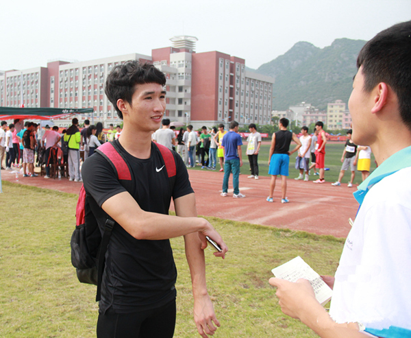 面对我们的采访,卢挺谊很轻松,自然的微笑在他脸庞展现,阳光下的他显得特别自信。在比赛中卢挺谊以轻松的状态与对手竞争,他告诉我们,在比赛中他不担心会失败。他对自己保持信心,今年是他第三次拿到男子组100米冠军。在他的话语中,我们知道,夺得冠军靠的不是运气,而是是不懈的努力和训练。在训练中他也碰到过困难,在天气不好的时候,他依然坚持训练,即使脚受伤的情况下,也没有放弃。在他看来,这点困难不能阻挡他前进的步伐。三年的夺冠经历,他已经学会了平静地对待此次夺冠,他觉得自己没有太多的感想,只是觉得很开心。但他对此次比赛的发挥感到不是很满意,觉得与他上次比赛的成绩相比差了那么一点,他希望还能提升一下自己的实力,突破自我。(文/谢冰、潘国海)