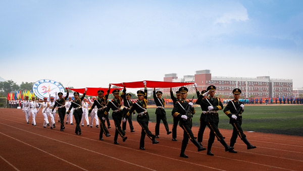 伴着雄壮的运动员进行曲,六名执旗手迈着铿锵有力的步伐,高举鲜艳的五星红旗步入会场,紧随其后的是校旗、校徽方阵。鲜花队、红旗队、裁判员和各院系运动员代表队、教师代表依次走过主席台,气宇轩昂、斗志昂扬,散发着青春的活力与激情。各方阵精神饱满,口号嘹亮,步伐铿锵,整齐划一,充分展示出桂航师生积极向上的精神风貌,赢得了现场观众的阵阵掌声和喝彩。