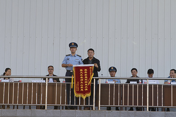 最后,为感谢空军空降兵学院对pp电子军训工作的大力支持,郝德温代表学校向空军空降兵学院赠送了锦旗。