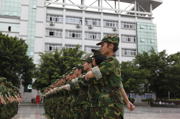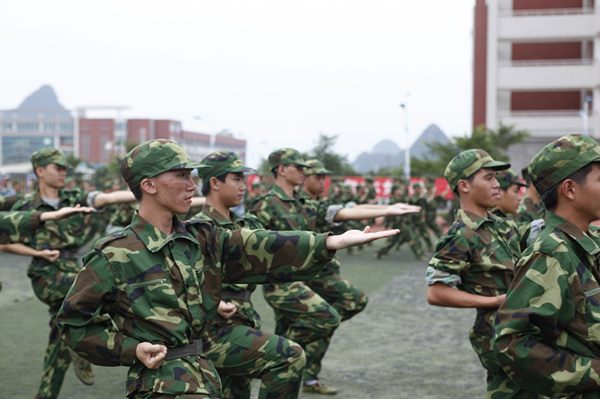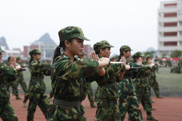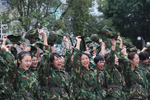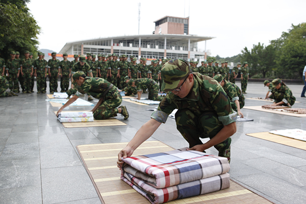 军训就是这样,烈日的残酷折磨,长时间纹丝不动的军姿站定,一边唱歌一边定腿,动不动就被罚做俯卧撑、深蹲,一遍一遍的齐步走、正步走、向左转、向右转,一遍一遍的敬礼、放下、敬礼、放下……似乎永无止尽。然而整整10天,就在这似乎的永无止尽中悄然溜走,留下的,便是那些挥之不去的记忆……
