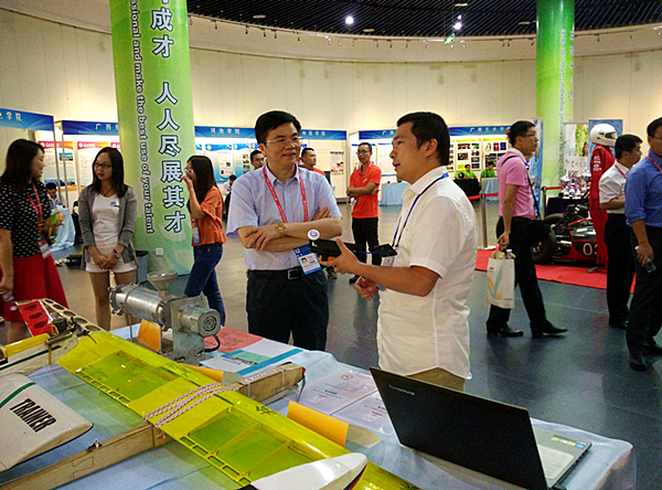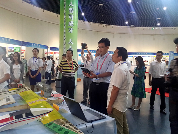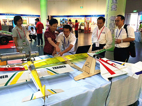 pp电子高度重视这次参展工作,李幼平书记、易忠校长多次过问并作出指示,罗延忠副书记对参展工作进行了具体部署和指导。经过认真遴选,最终选送了《滑翔机与民用无人机航拍监测平台》、《无人机遥测》、《高效垃圾脱水机》等6件作品,其中,部分作品被组委会选中陈列在主会场的突出位置。
