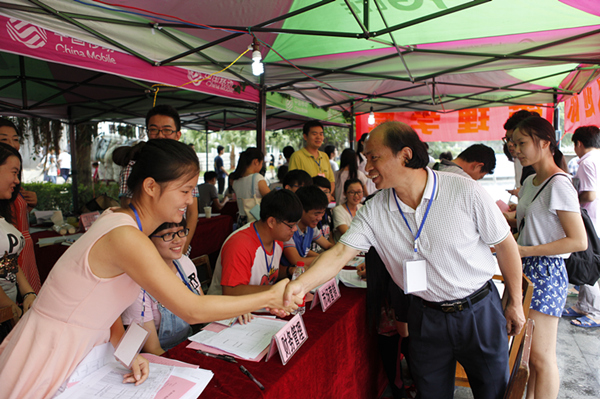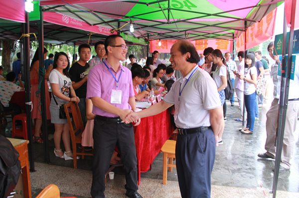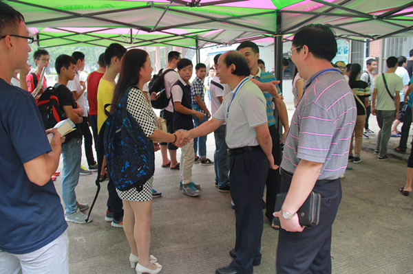 在迎新现场,易忠校长与工作人员亲切交流,“到现在为止,来学院报到的有多少学生?”“昨天是不是熬夜接待新生了,注意休息”,在每一个院系的迎新点,易忠都与同学们亲切的握手,并祝贺现场学工战线的老师们教师节快乐,感谢所有工作人员的辛勤工作。易忠嘱托大家要仔细聆听家长们的心声和需求,提供好服务。“可以把今年新生咨询较多的问题整理出来,放在明年的新生手册里,提前给新生参考。”