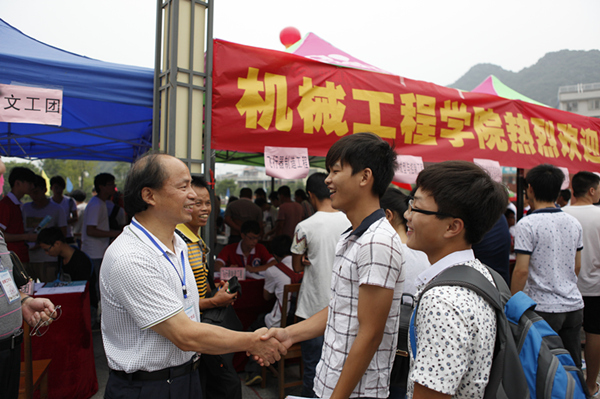 在走访各迎新点的间隙,易忠还主动与新生家长打招呼,感谢他们对pp电子官方网站入口的信任,并询问行程安排。“什么时候到的,高铁还是火车呀,住宿有没有着落?”“回程票定好了吗,有没有座?”“留个孩子辅导员的电话,经常和学校保持联系。”来自湖北的新生家长,看到学校领导对新生的关心和重视,高兴地说“本来就觉得桂林山好水好,现在到学校一看,觉得把孩子交给桂航,我们放心!”休息区的家长中还有从我们学校毕业的校友,“桂航的老师悉心培育了我,现在,我又把自己的孩子送到这里来了!”