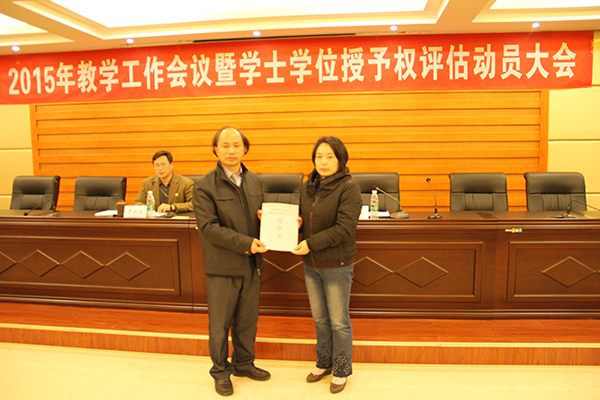 易忠院长对学士学位授予权评估工作作了全面的动员和部署,强调要深刻认识学士学位授予权评估的重要性和必要性,进一步增强工作的责任感和紧迫感;要清醒认识学校在“以评促建、以评促改、以评促管、评建结合、重在建设”工作中所面临的形势和任务;要求各部门各单位严格对照学士学位授权单位的指标体系,着力查找、解决本科教学中存在的问题和不足,扎实做好各项迎评促建工作。会上,易忠院长与教学单位和相关职能部门负责人签订了学士学位授予权评估工作任务书。