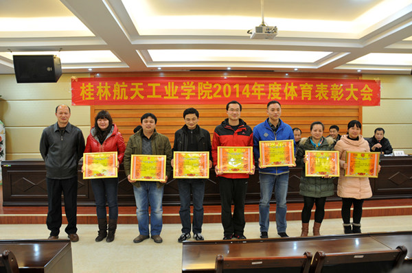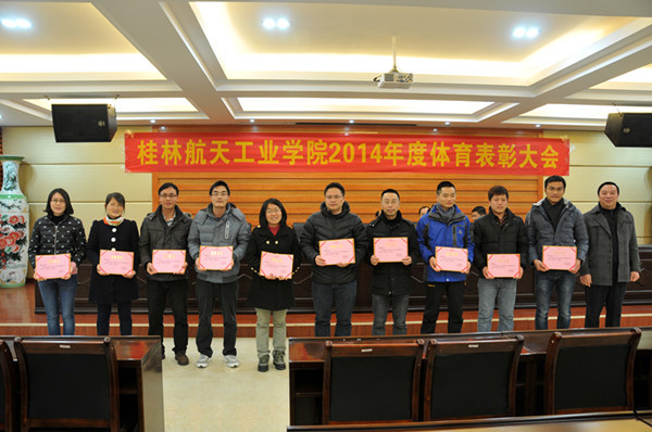随后,由体委副主任魏忆南宣读《关于表彰2014年度体育工作先进集体和先进个人的决定》文件。表彰了14个2014年度教工、学生“体育工作先进集体”;熊川等59名师生代表被评为2014年度“体育工作先进个人”、“体育锻炼积极分子”、 “优秀运动员”、 “优秀教练员”、“优秀裁判员”。校领导为获奖集体和个人颁奖。