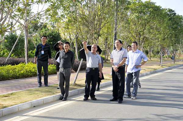 调研组一行受到了桂林医学院党委副书记宿富国的热情接待,在他的陪同下,调研组实地考查了医学院临桂校区东大门、校训石、环形道路、驳岸水系、庭院景观、学生公寓、食堂以及部分在建运动场馆等项目,详细了解了校区整体规划与建设、楼宇道路命名、园林绿化等方面的情况。调研组还就校园文化规划、园林景观建设等工作与该校宣传、学工、基建、发展规划等相关职能部门进行了对口交流和深入探讨。