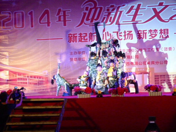 整场晚会载歌载舞,热闹非凡,在一片欢声笑语中,来宾校区2014年迎新晚会圆满落幕。