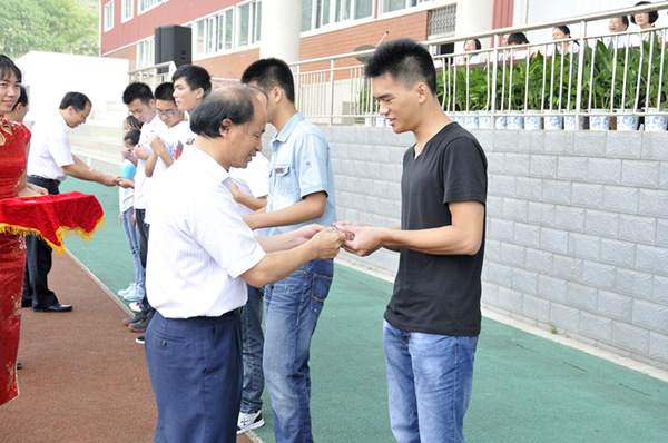 最后,学校领导向新生代表赠送校徽,开学典礼圆满结束。