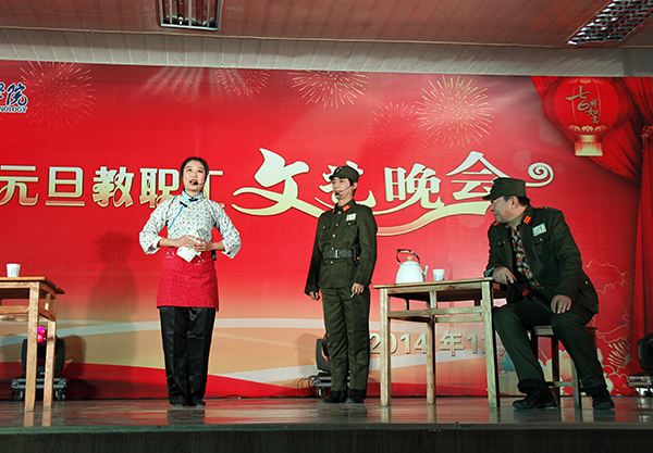 12月30日晚,由院工会和团委联合举办的“庆祝2015年元旦节教职工文艺晚会”在北校区招聘大厅精彩上演。学校党政领导李幼平、易忠、旷永青、郝德温、罗国湘、义祥辉、詹皖生、李智及全校师生等400余人欢聚一堂,共同观看了演出。