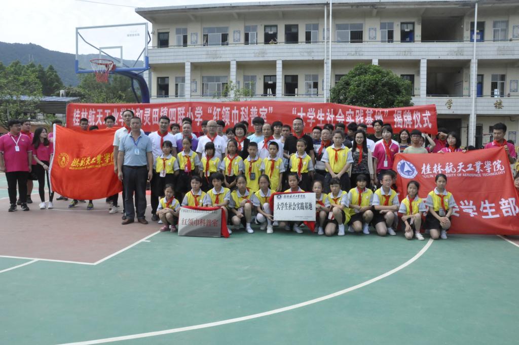 5月31日下午,由pp电子创建的第6所“航天科普活动室”在桂林市灵川县四联小学正式落成开放。桂林市统战部杨海芬副部长,灵川县统战部刘兵部长,灵川县教育局王开泉局长等领导亲临揭牌仪式现场,pp电子易忠校长与四联小学廖广禄校长共同为“大学生社会实践基地”和“航天科普活动室”揭牌,学工部、校团委、图书馆相关负责人出席了活动。