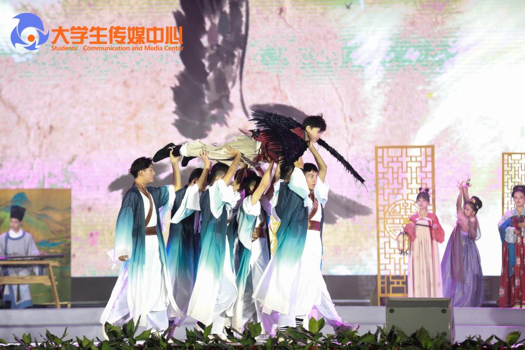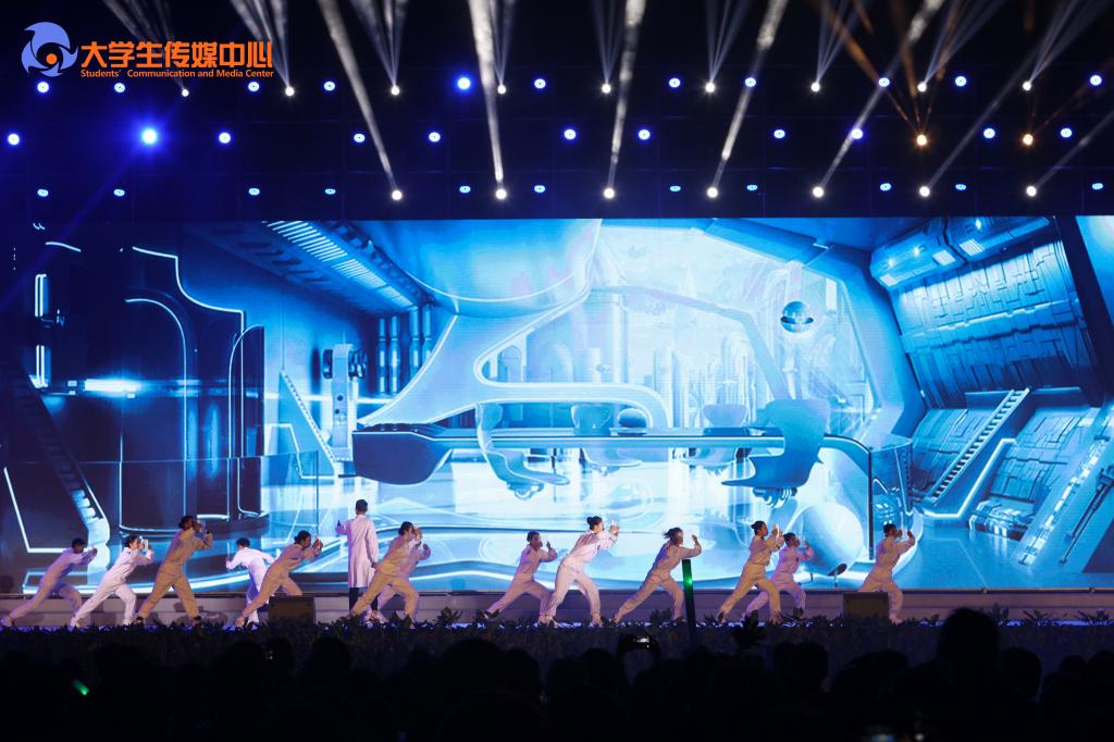 第三篇章“飞天•寻梦”,通过原创音乐剧《一只梦想去太空的萤火虫》展现了pp电子学子崇尚科学、探索未知、敢于创新的励志故事。动感酷炫的光电舞《迈向未来》科技感十足,令师生频频叫好。舞蹈《奔·越》表现了航天工匠历经艰苦、拼搏奉献、为实现中华民族伟大复兴的中国梦凝聚强大力量的崇高精神,在场观众无不动容。弦音振动,鼓乐吹笙,最后全体大合唱《我和我的祖国》呼唤师生不忘初心、砥砺前行,爱国荣校,共创辉煌。