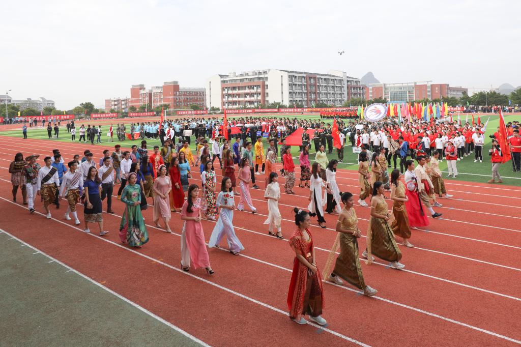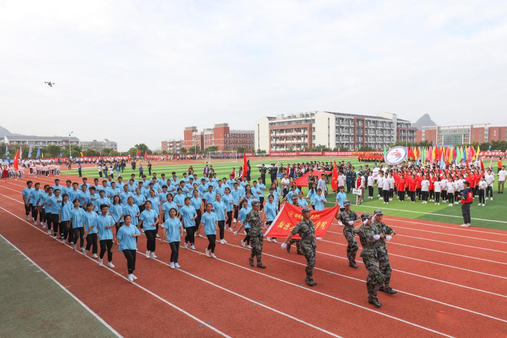 11月1日上午,pp电子第三十八届田径运动会开幕式于南校区风雨足球场隆重举行。校领导李幼平、罗延忠、罗国湘、胡泽民、詹皖生、杨杰、李智、韦冠武、孙山林出席开幕式,学工部(处)、教务处、校团委、校工会、体育部主要负责人和一至十院、国际教育学院主要负责人,师生代表参加开幕式。