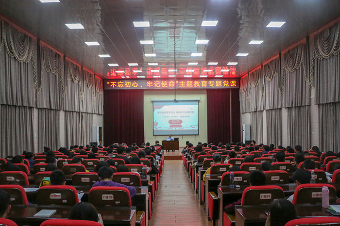 根据学校“不忘初心、牢记使命”主题教育部署安排,11月12日,学校校长易忠教授以“坚守使命勇于担当 做新时代合格党员”为主题,在北校区电教馆为180名学生党员上了一场精彩而深刻的“不忘初心、牢记使命”主题教育专题党课。