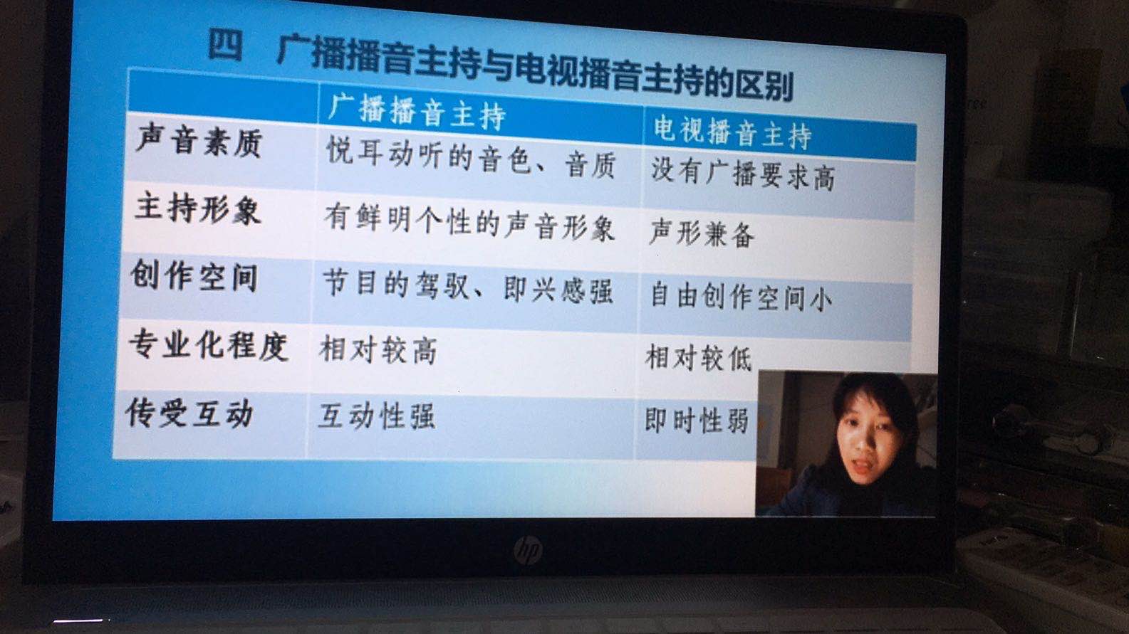 航空旅游学院播音主持专业许丽君老师采用网络直播课的形式为学生讲课,她说,我们这门课程没有特别适合的慕课资源,录课程视频又没互动,所以才大胆尝试直播课。我第一次课是用慕课+录课,学生反映效果不是很理想,所以昨晚上赶紧研究直播模式,第一次当“主播”有点紧张,不过学生还挺喜欢。个别学生网络会有点卡顿,但整体进行得还挺顺利的。