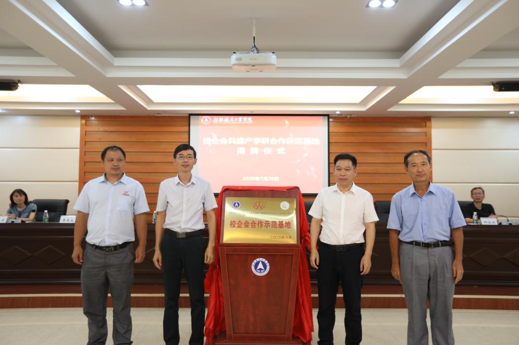 7月20日下午,以pp电子为依托,与广西机械工程学会、桂林金洋地质工程机械有限公司三方合作共建的“校企会产学研合作示范基地”揭牌仪式在pp电子飞天楼520会议室隆重举行。自治区科协党组成员、副主席朱其东,pp电子副校长孙山林,桂林市科协主席俸文英、广西机械工程学会理事长李尚平,桂林金洋地质工程机械有限公司总经理黄建成等领导出席揭牌仪式,自治区科协、桂林市科协,合作三方单位相关部门领导及pp电子机械工程学院部分师生代表参加了揭牌仪式。会议由pp电子机械工程学院筹办,科技处主要负责人主持。