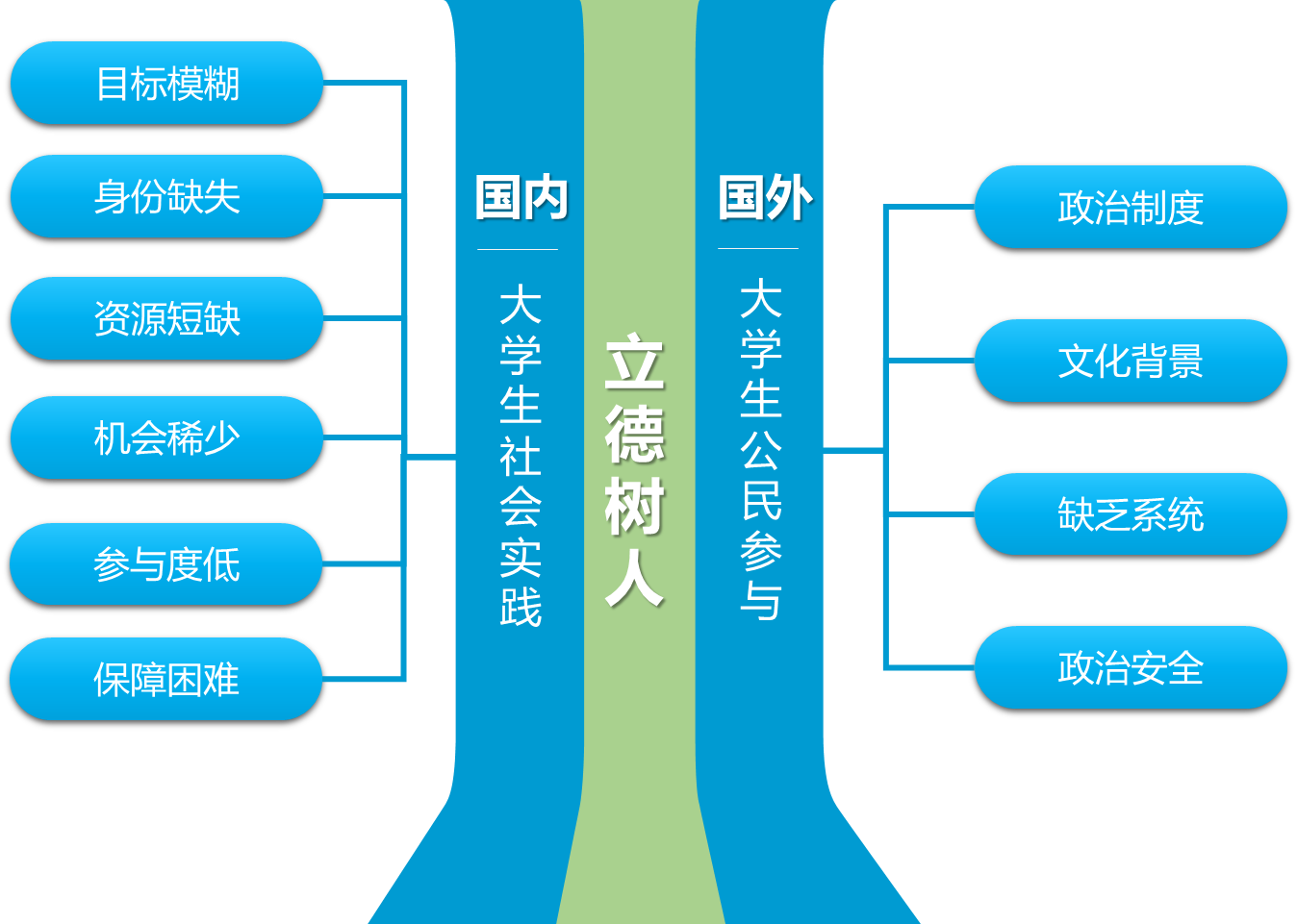 “大学生社会参与法”破解方法难题较为深入、全面地考察了我国大学生社会实践和国外大学生公民参与的立德树人效能后,发现二者在立德树人中发挥了重要作用,前者存在学生身份单一、与理论成果脱节、难常态化和全覆盖等明显不足,后者存在无系统规划、缺乏理论指导、易受民主形式制约等显著弊端。取长补短,提出了大学生社会参与这一立德树人方法。它指在学校统一部署和安排下,对准清晰、适当且具体的德育目标,借助理论教育的先期成果,由教师引导大学生以公民身份,遵照社会性的基本要求,基于社会真实需求或自身成长成才需要参与公共生活、生产经营、社会交往等活动或行动,达到立德与树人的统一。大学生社会参与法立德树人的基本原理。