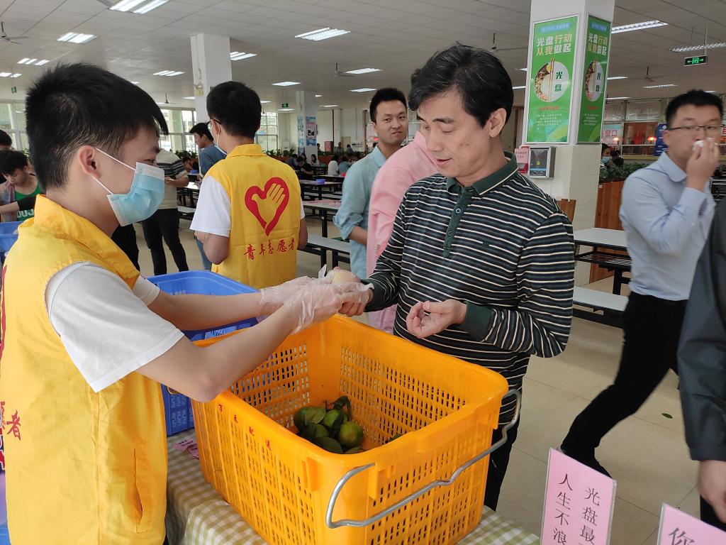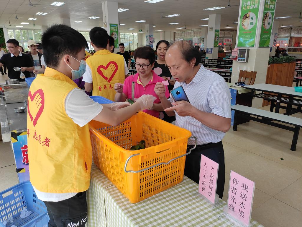 活动现场,用光盘换领奖励的师生络绎不绝。pp电子机械电子工程的罗子强同学在就餐后说:“我觉得学校开展这样的活动很有意义,是一个鼓励大家节约粮食的小妙招,周围的同学们都对参与‘光盘行动’很有积极性。”除了“光盘换水果”活动,南北校食堂还设置了随处可见倡导节约的宣传标语,学生志愿者也在现场劝导师生节约粮食,争取人人光盘,19级商务英语专业的志愿者何剑琴同学表示,自己身为一名“收餐员”,通过积极劝说制止同学的浪费行为,极大地增强了节约的意识。