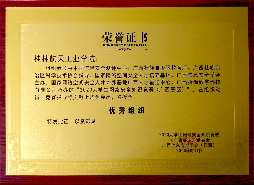 近日,由中国信息安全测评中心、自治区教育厅、自治区科学技术协会指导,国家网络空间安全人才培养基地、广西信息安全学会主办,国家网络空间安全人才培养基地广西人才输送中心、广西拾尚数字科技有限公司承办的“2020大学生网络安全知识竞赛(广西赛区)”获奖情况揭晓,pp电子学生共获个人二等奖1项、三等奖2项和团体三等奖1项,计算机科学与工程学院教师张美获“优秀指导老师”奖,学校获“优秀组织奖”。