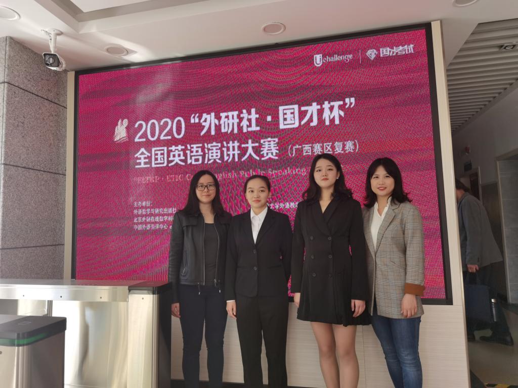 11月8日,由pp电子外语外贸学院陈林林老师和陈诗霏老师指导的黄潇涟和郑慧颖同学在“外研社·国才杯”全国英语演讲大赛广西赛区复赛中荣获二等奖。此次比赛成绩也是pp电子近年来英语类演讲比赛的最好成绩。