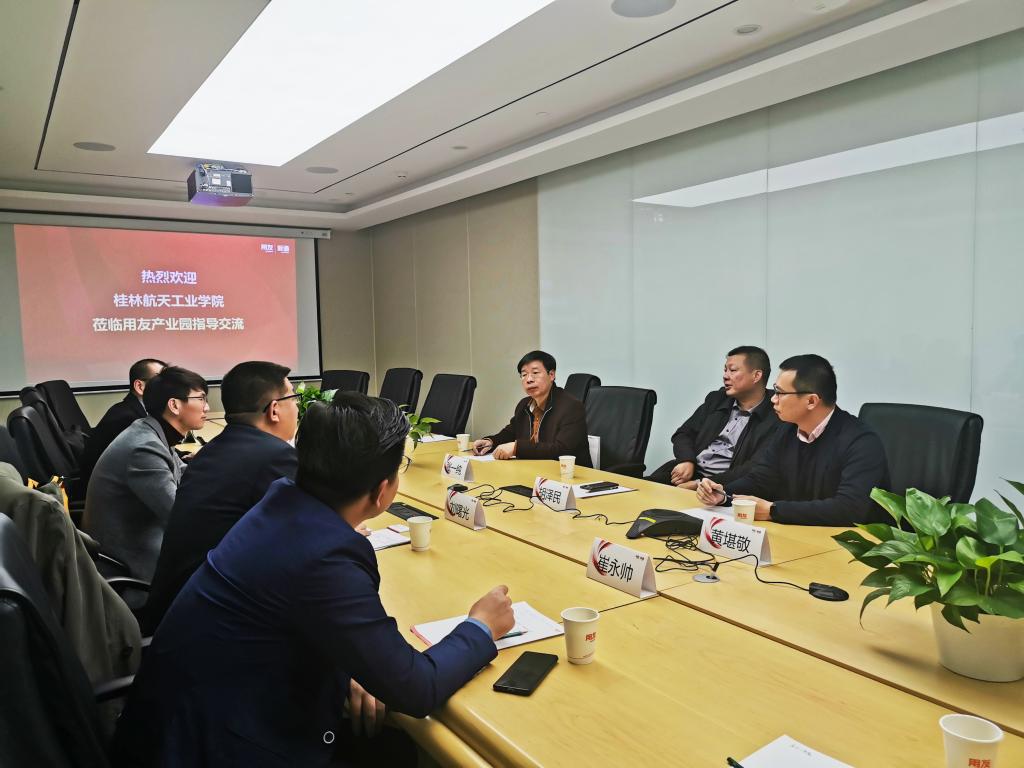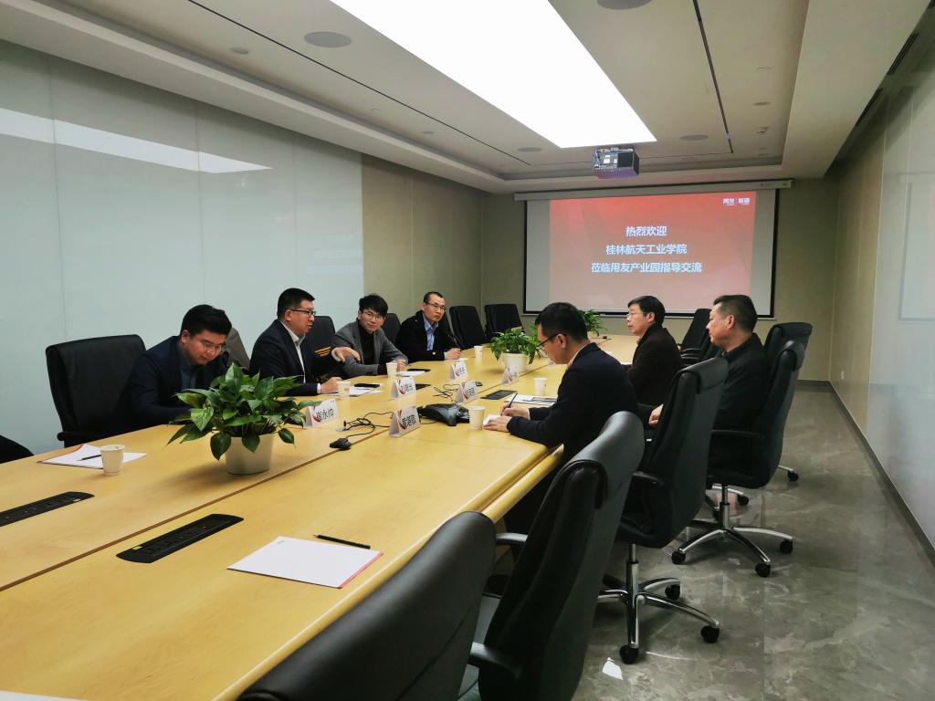在新道科技调研期间,胡泽民与新道科技股份有限公司刘曙光副总裁、新道科技校企合作部门负责人、教学服务部门负责人、华南区负责人进行了会谈。双方就通过校企合作协同育人的形式促进产教深度融合,深入推进教育教学综合改革,校企共同探索“云财务管理会计师”应用型、复合型、创新型人才培养路径方法进行了研究,并签订了桂航-新道科技校企合作与协同育人合作协议。