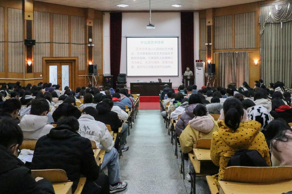 12月18日下午,全国建筑艺术指导委员会委员、湖南省美术家协会副主席、著名画家、湖南大学建筑学院教授、设计学博士生导师陈飞虎莅临pp电子讲学,在致远楼108教室为pp电子师生带来了一场以《艺术修养与生活视野》为主题的讲座。校长易忠主持讲座,全校300余名师生聆听了讲座。