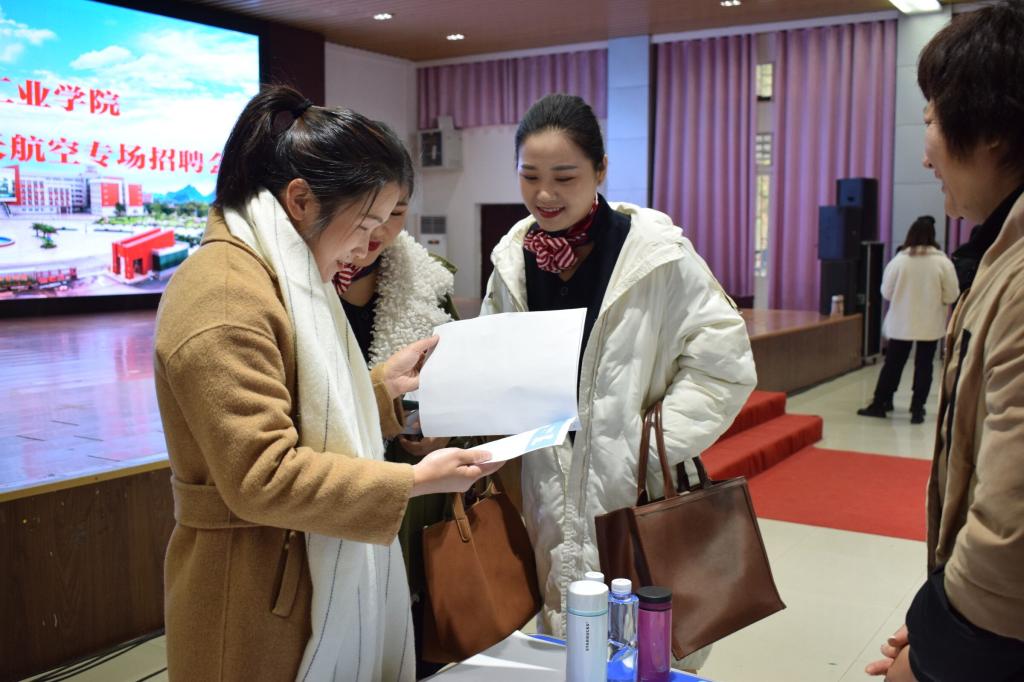各参会单位的展位前挤满了前来咨询应聘的毕业生,航天航空类及其相关专业毕业生着制服参加招聘会,向各用人单位展示了pp电子毕业生的精神风貌。应聘者手持精心准备的自荐书和简历,积极与招聘人员交流,主动了解用人单位的情况。各用人单位耐心地向毕业生介绍公司概况、职业发展方向、薪资福利待遇等问题,并且通过宣讲的方式让学生进一步加深了解。