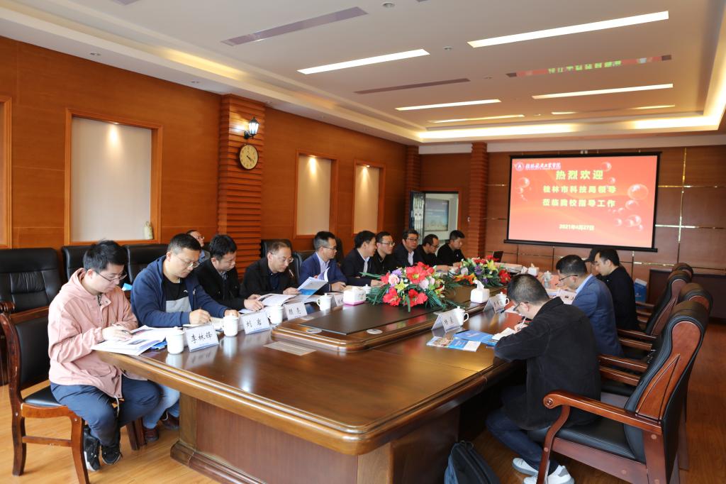 4月27日下午,桂林市科学技术局党组书记、局长张晓阳带队来pp电子考察调研。学校党委书记李幼平、副校长孙山林在飞天楼6楼会客室接待了调研组。