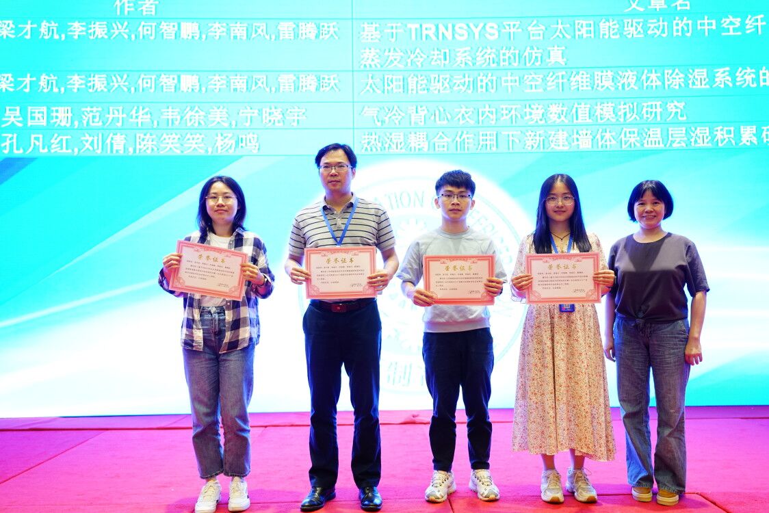 暖通空调及制冷行业制造商、经销商、工程公司等企业做了相关技术介绍,并颁发了一系列奖项。由吴国珊、范丹华老师指导的2019级能源与动力工程专业吴燕婵等3名同学的论文《气冷背心衣内环境数值模拟研究》获得优秀论文二等奖。