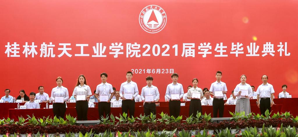 校长易忠在致辞中向顺利完成学业的3861名毕业生表示祝贺,他说这几年来,大家的桂航步履铿锵。完成了栉风沐雨、砥砺前行的“不惑”跨越,打赢了合格评估的圆满胜仗,扛住了新冠肺炎疫情的猛烈碰撞,进阶了校园环境旧貌换新颜的旖旎风光,成功挺进了艾瑞深中国大学排行榜400强。他对毕业生们提出三点期许第一,坚持理想,笃定信念,不负青春。第二,艰苦奋斗,脚踏实地,不负韶华。第三,报效国家,勇挑重担,不负时代。