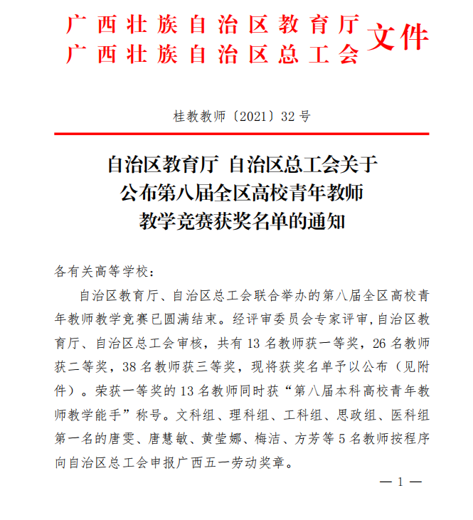 近日,由自治区教育厅、自治区教育工会委员会主办的第八届广西高校青年教师教学竞赛在广西师范大学圆满落下帷幕。来自全区36所院校的127名高校教师参加了本次比赛,赛程为期三天,在文科、理科、工科、思政、医科五个组别里展开较量。pp电子选派4名教师参加比赛。经过激烈的角逐,马克思主义学院李巧茹荣获一等奖;汽车工程学院黄祥莉、外语外贸学院李一枝荣获二等奖;理学院吴珂荣获三等奖。这是pp电子参加参加区级青教比赛整体成绩最好的一次。