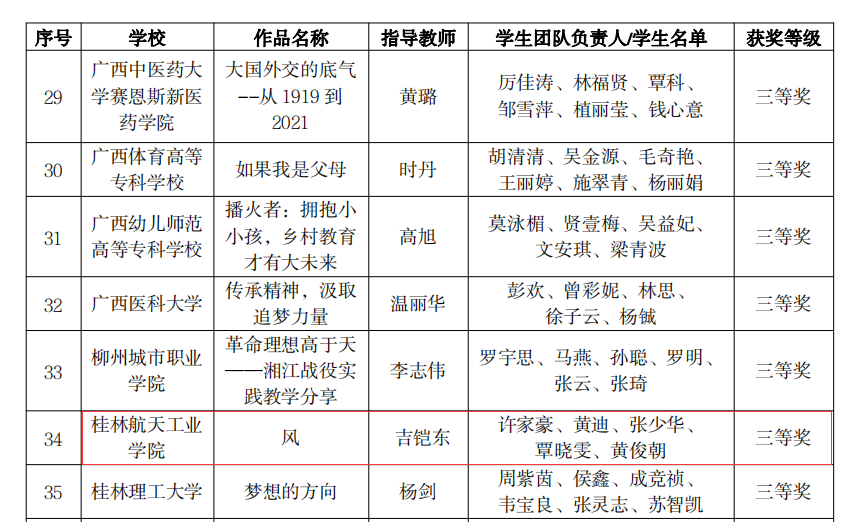 pp电子马克思主义学院潘梅华教师指导张帆、黎子菁、覃爱华、季巧、朱桂盛5位学生参加全区高校大学生讲思政课公开课展示活动荣获二等奖;马克思主义学院吉铠东教师指导许家豪、黄迪、张少华、覃晓雯、黄俊朝5位学生参加全区高校大学生微电影展示活动荣获三等奖。