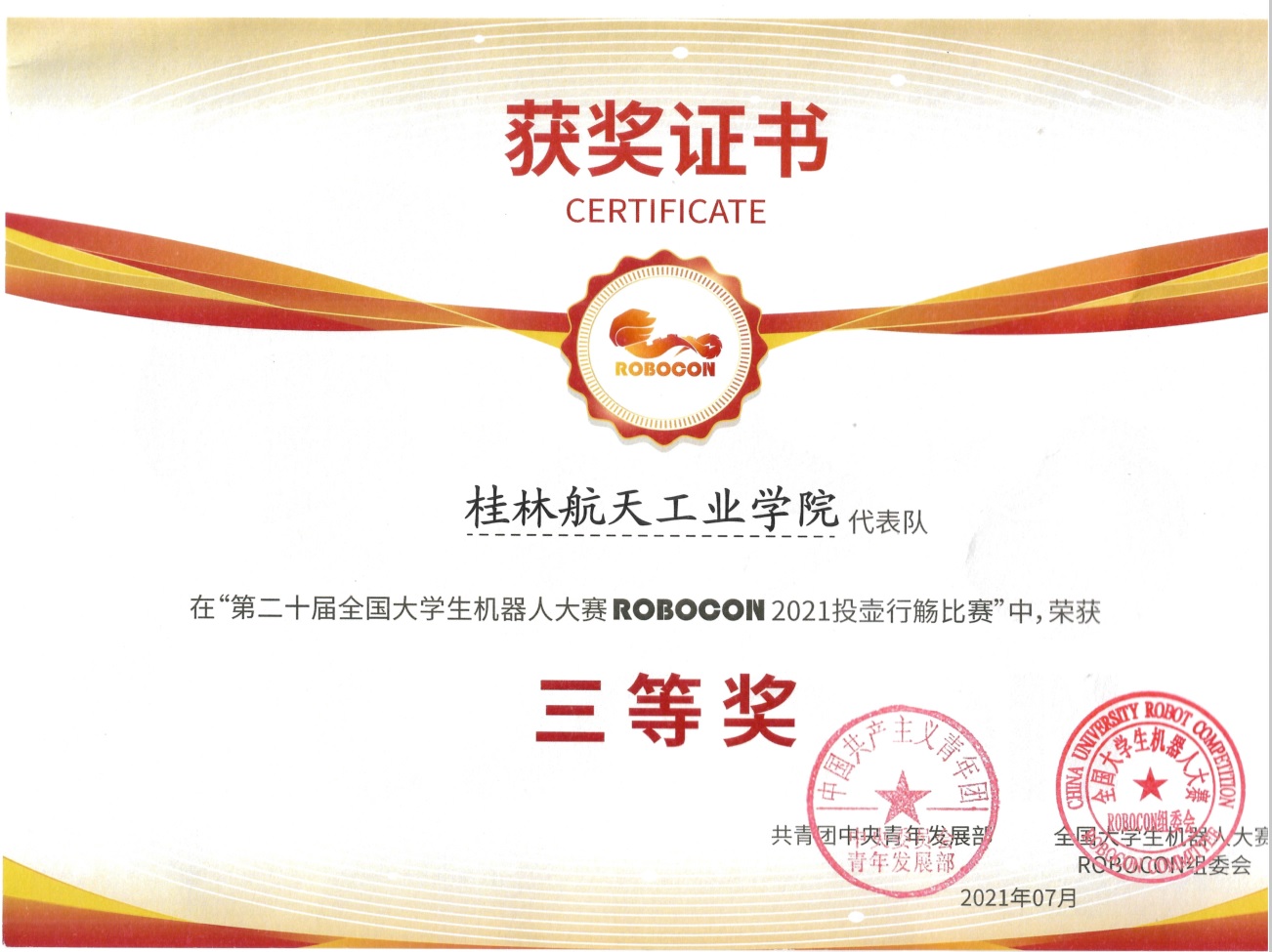 7月31日,第二十届全国大学生机器人大赛ROBOCON2021投壶行觞比赛全国总决赛落下帷幕。此次大赛由共青团中央主办,由华中科技大学、哈尔滨工业大学、武汉大学、北京航空航天大学等79所知名高校派出的106支参赛队伍共襄盛举,2000余名参赛选手同台竞技,上演了一场场激烈的机器人大战。由电子信息与自动化学院的学子组成的pp电子官方网站入口代表队(领队教师:嵇建波;指导教师:李永涛;组员:陈富文、刘耀天、傅钟成、廖梓翔、陈思远、张立等14名学生)经过多场激烈的角逐,最终斩获投壶行觞比赛的全国三等奖。