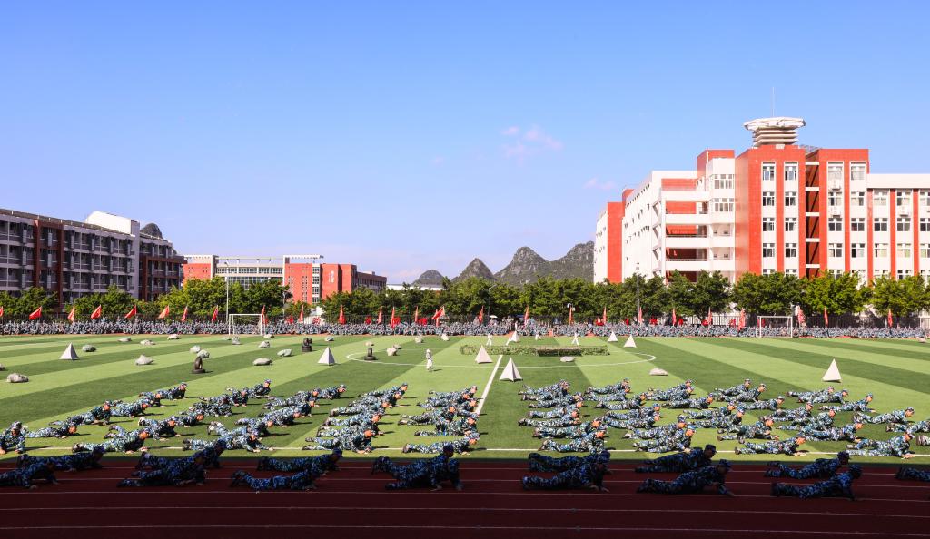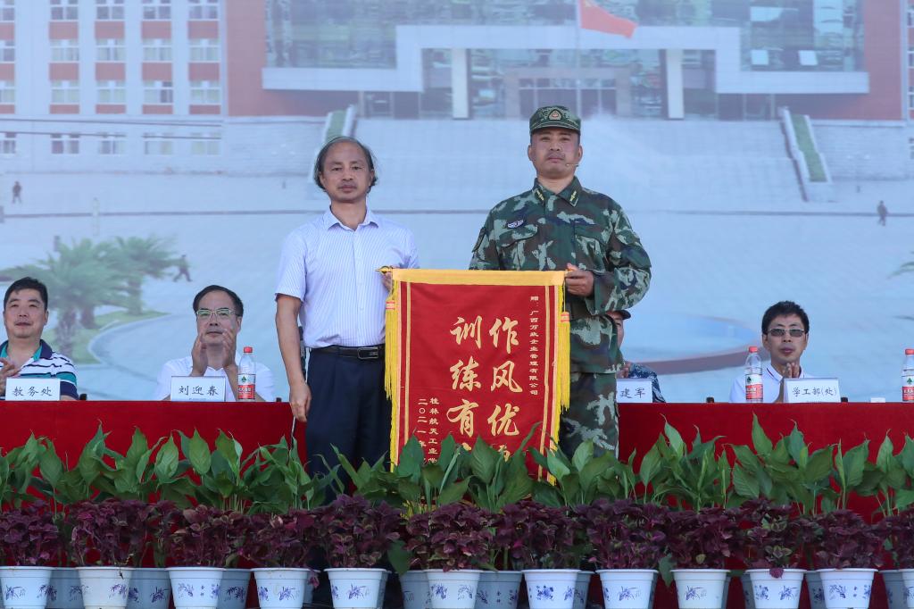学生军训团团长钟建军向2021级新生表示祝贺,充分肯定他们在军训中所取得的优异成绩。他希望同学们通过军训增强国防意识,提高军事素养。