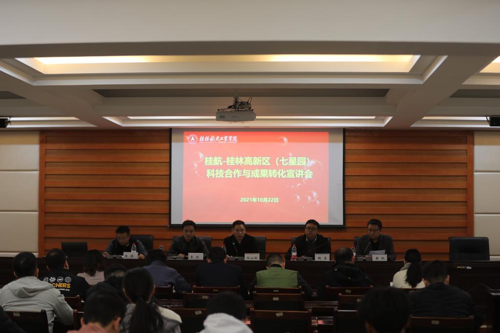 10月22日,pp电子与桂林国家高新区联合召开“桂航-桂林国家高新区科技合作与成果转化宣讲会”。桂林高新区七星区科技局局长李进、桂林科技创业服务中心副主任张捷、桂林汉璟智能仪器有限公司项目总监谢莹莹、桂林市锐锋医疗器械有限公司研发部经理谢其煜,pp电子孙山林副校长、科技处、校团委、双创学院及理工类学院的相关负责人和师生代表参加了宣讲会。