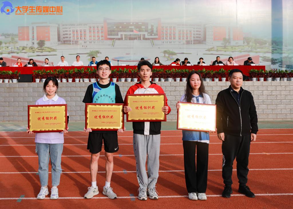 会上,本届田径运动会总裁判长高大千宣布本届运动会的竞赛最终成绩:能源与建筑环境学院以235分夺得男女团体冠军,机电工程学院和电子信息与自动化学院分列亚季军,学校领导分别为获奖的集体颁奖。