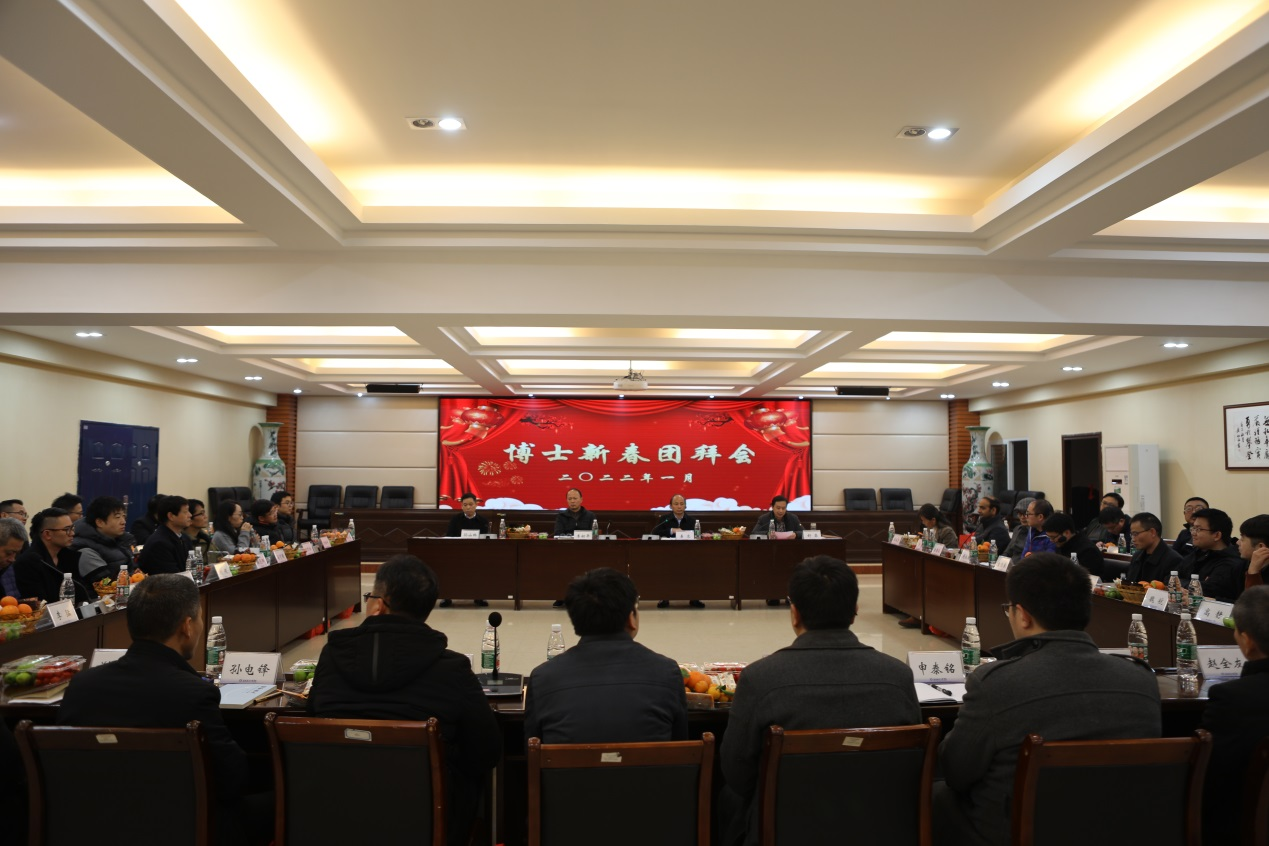 1月6日下午,学校在飞天楼520会议室召开博士新春团拜会,学校党委书记李幼平、校长易忠、副校长孙山林与30位引进及自培回校博士代表共聚一堂喜迎农历壬寅新年。