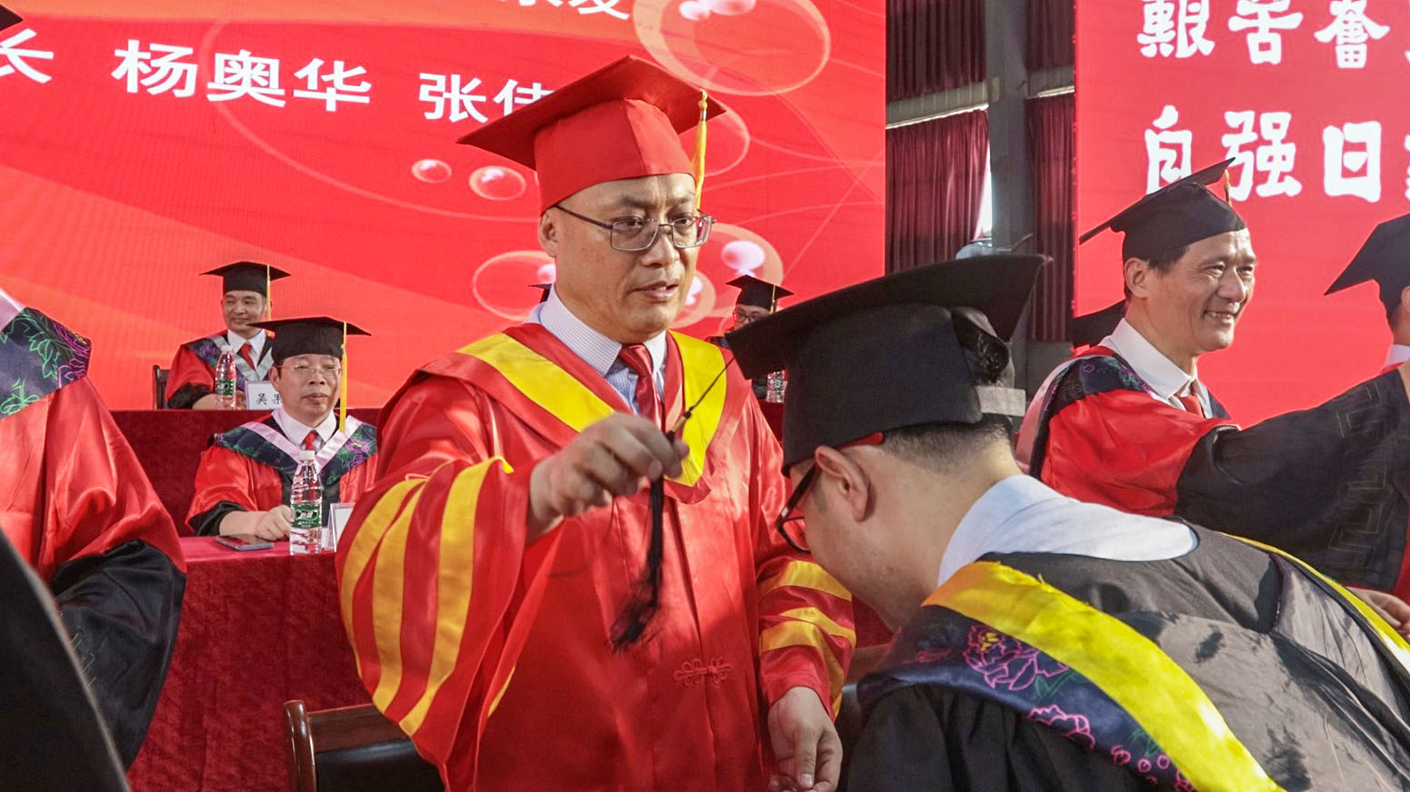 罗延忠宣读学校关于授予学生学士学位的决定,经pp电子学士学位评定委员会审议,同意授予3492名毕业生学士学位,同意授予成人教育15名毕业生学士学位,同意授予30名留学生学士学位。